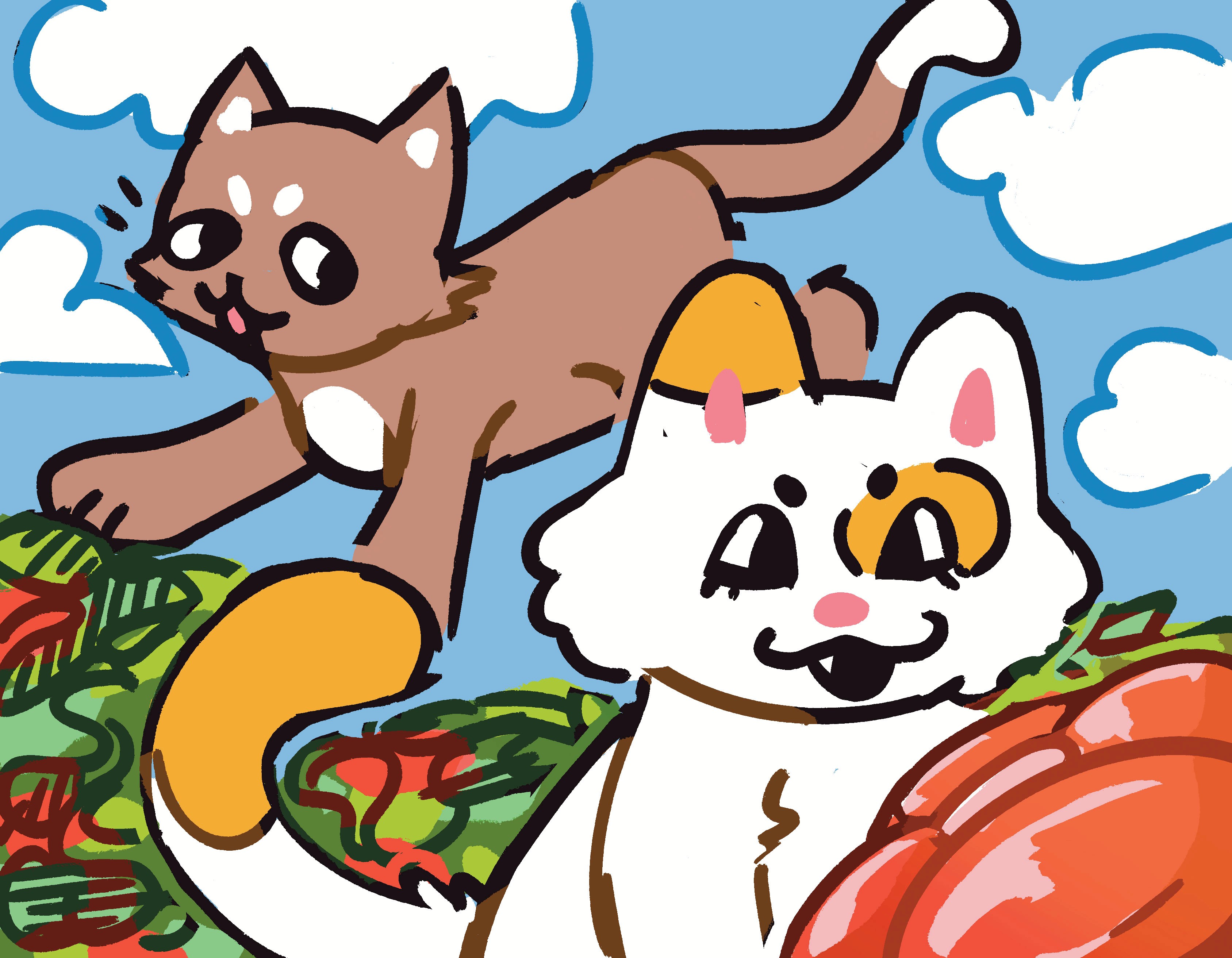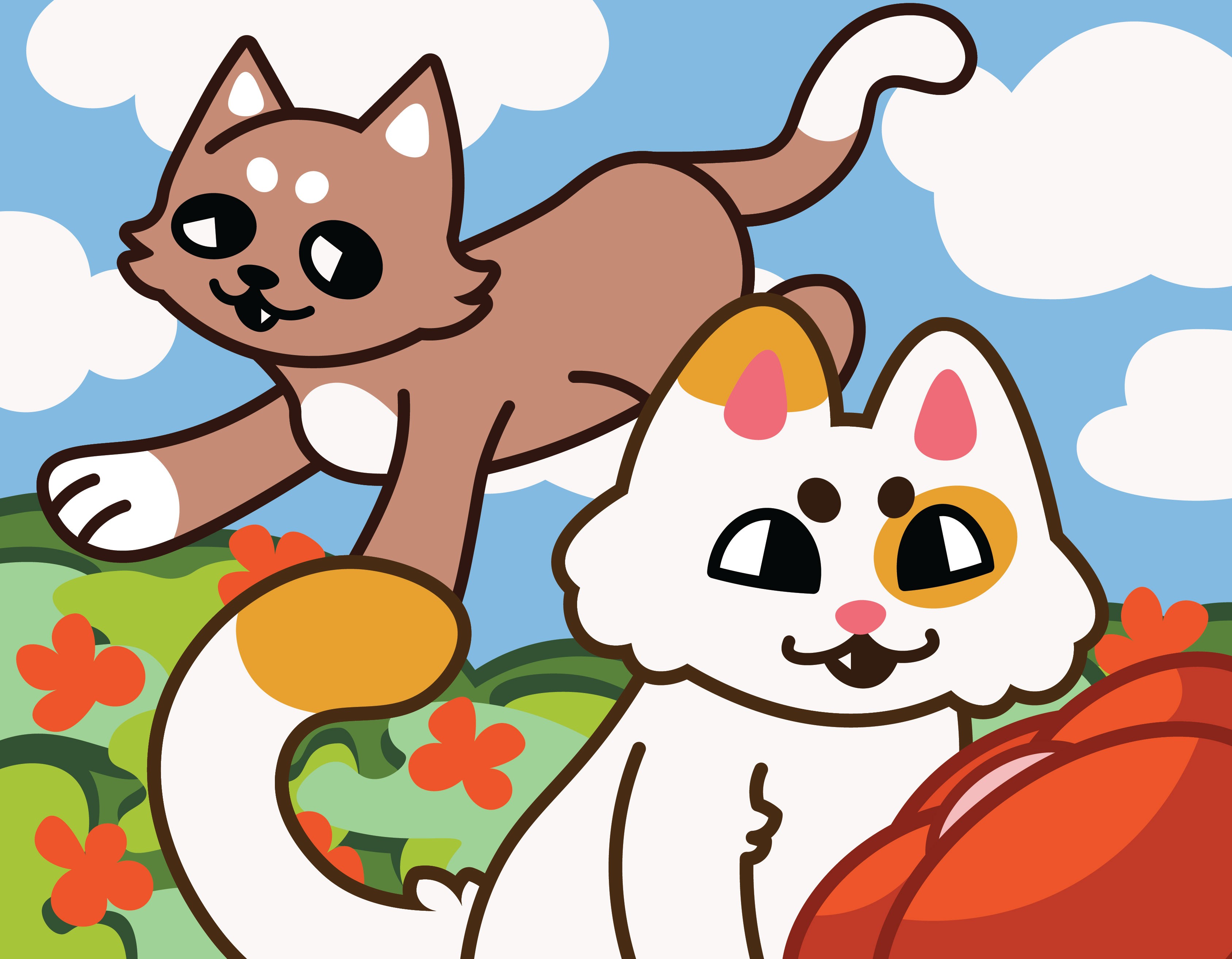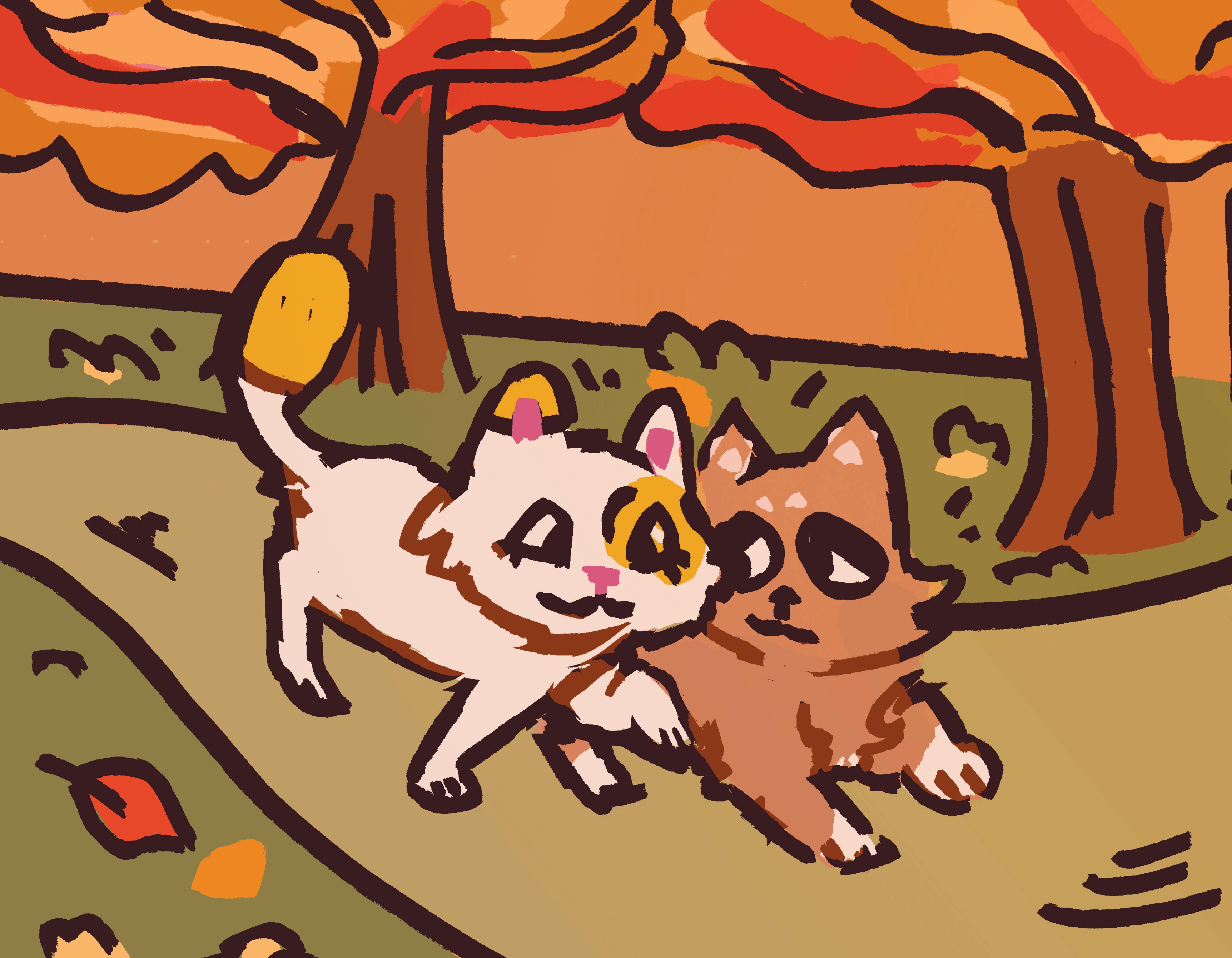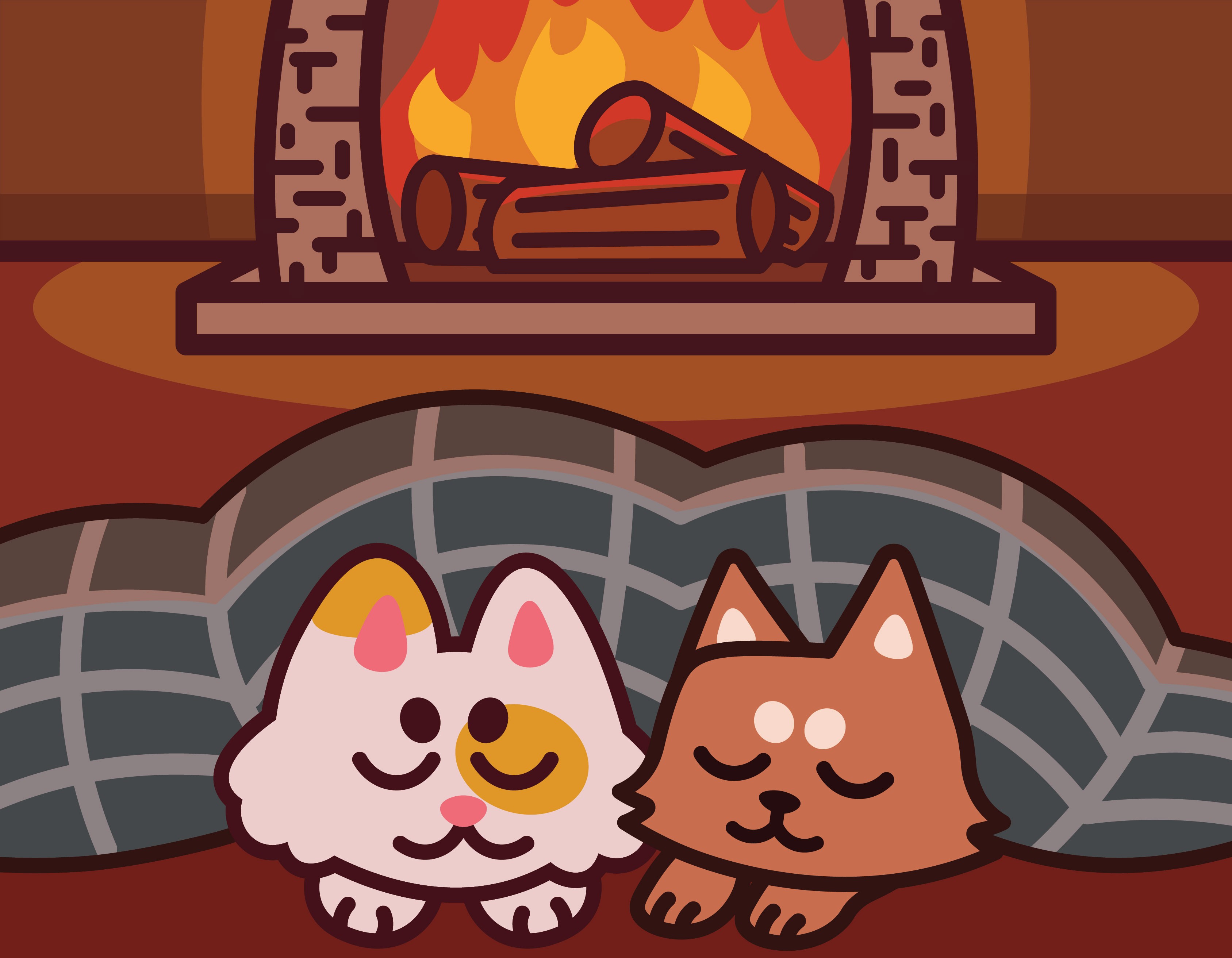 A 12-month calendar full of colorful illustrations of “slice of life” moments between two cats throughout the year. Each illustration connects to the weather, holiday, or just general connotations of the month. Geared towards young and young-at-heart cat fans who like colorful art. Created in Adobe Illustrator with vectors and a heavy focus on shape and color.