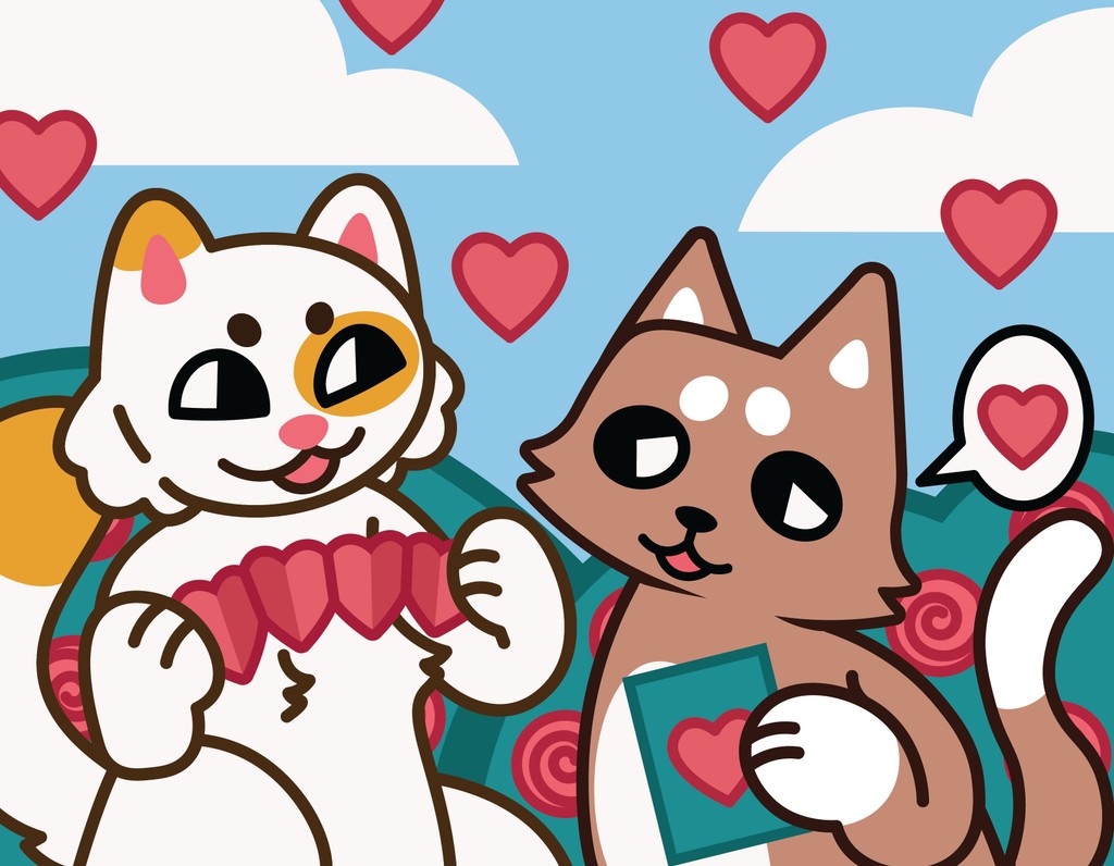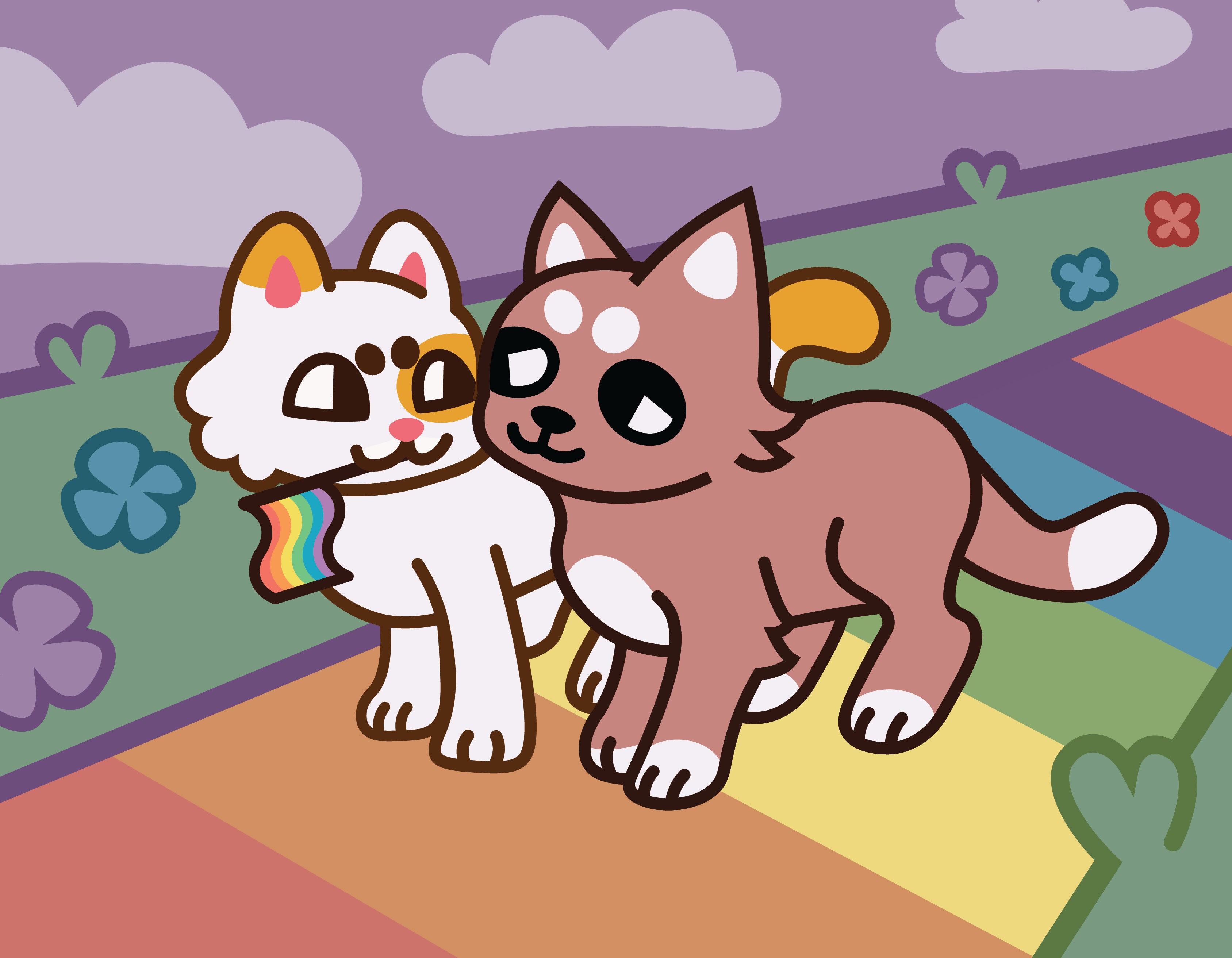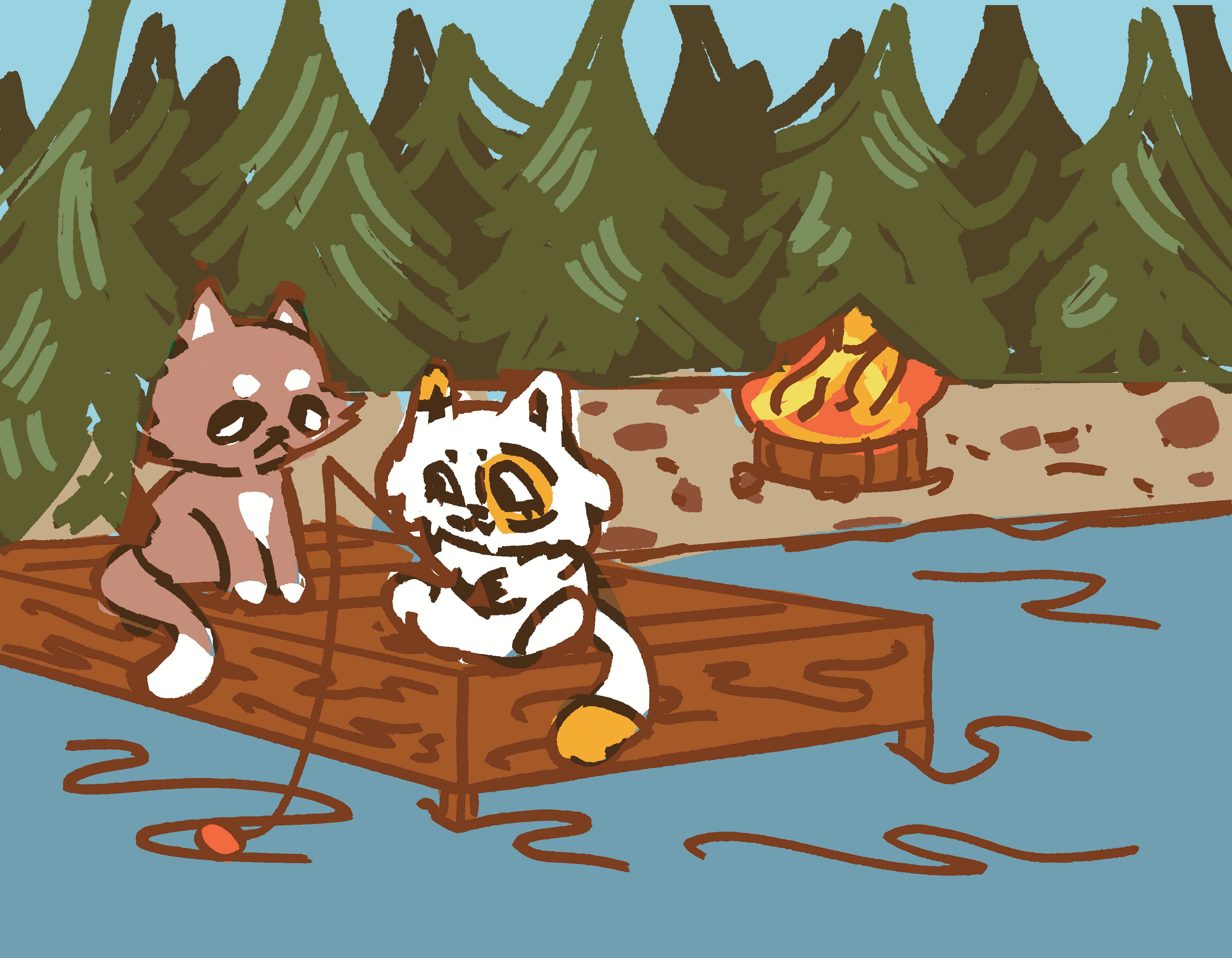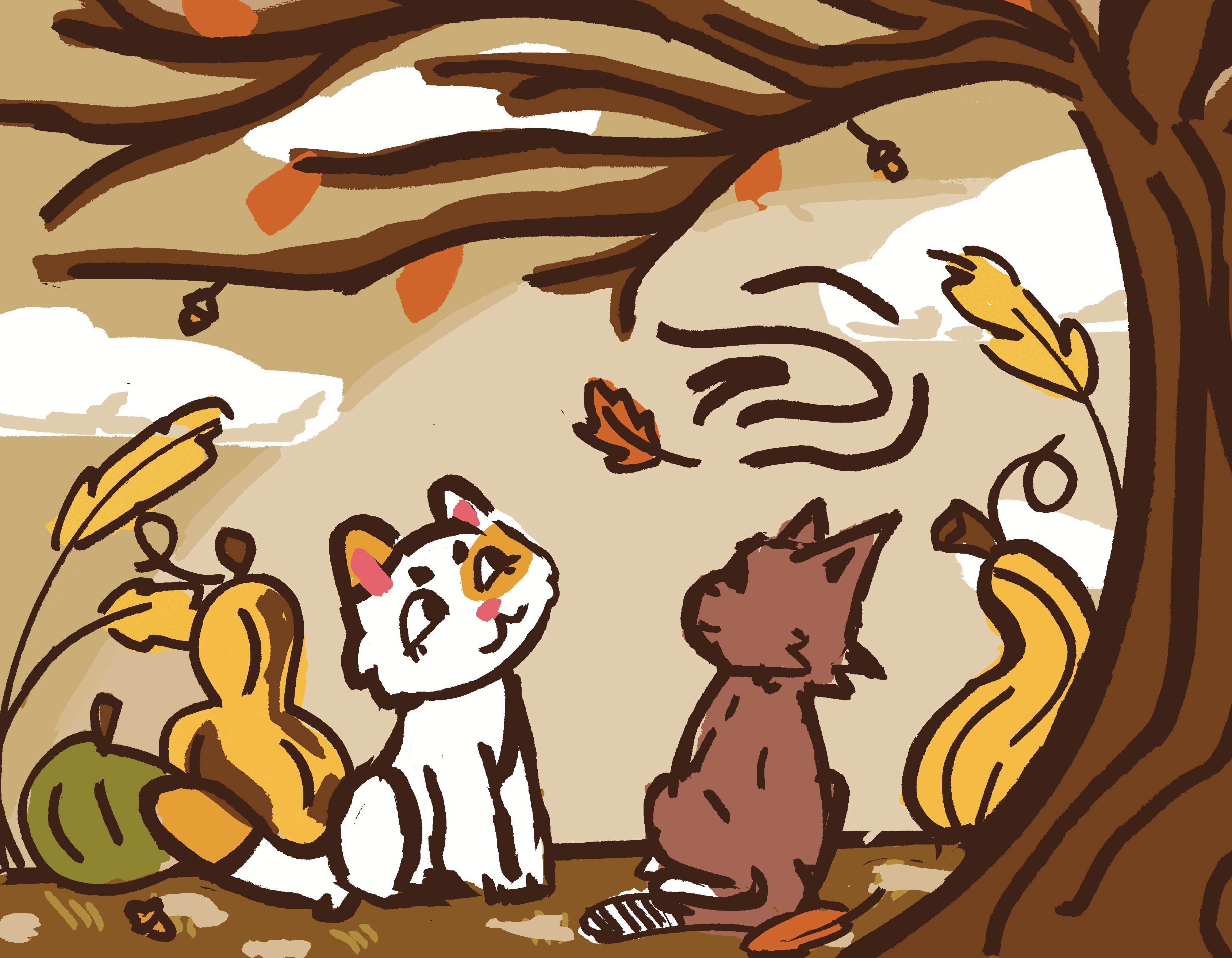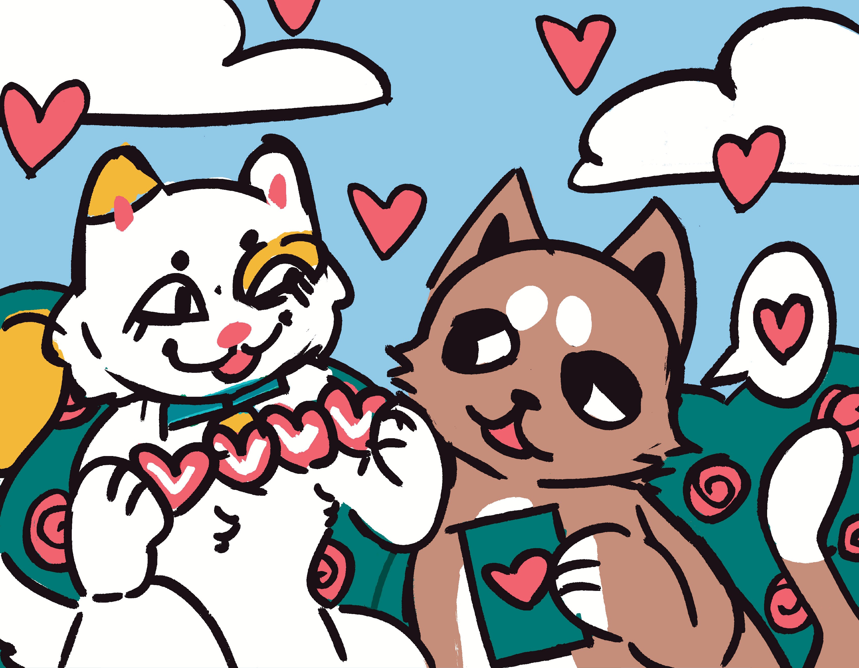 A 12-month calendar full of colorful illustrations of “slice of life” moments between two cats throughout the year. Each illustration connects to the weather, holiday, or just general connotations of the month. Geared towards young and young-at-heart cat fans who like colorful art. Created in Adobe Illustrator with vectors and a heavy focus on shape and color.