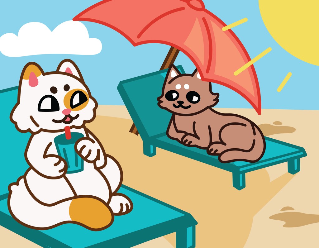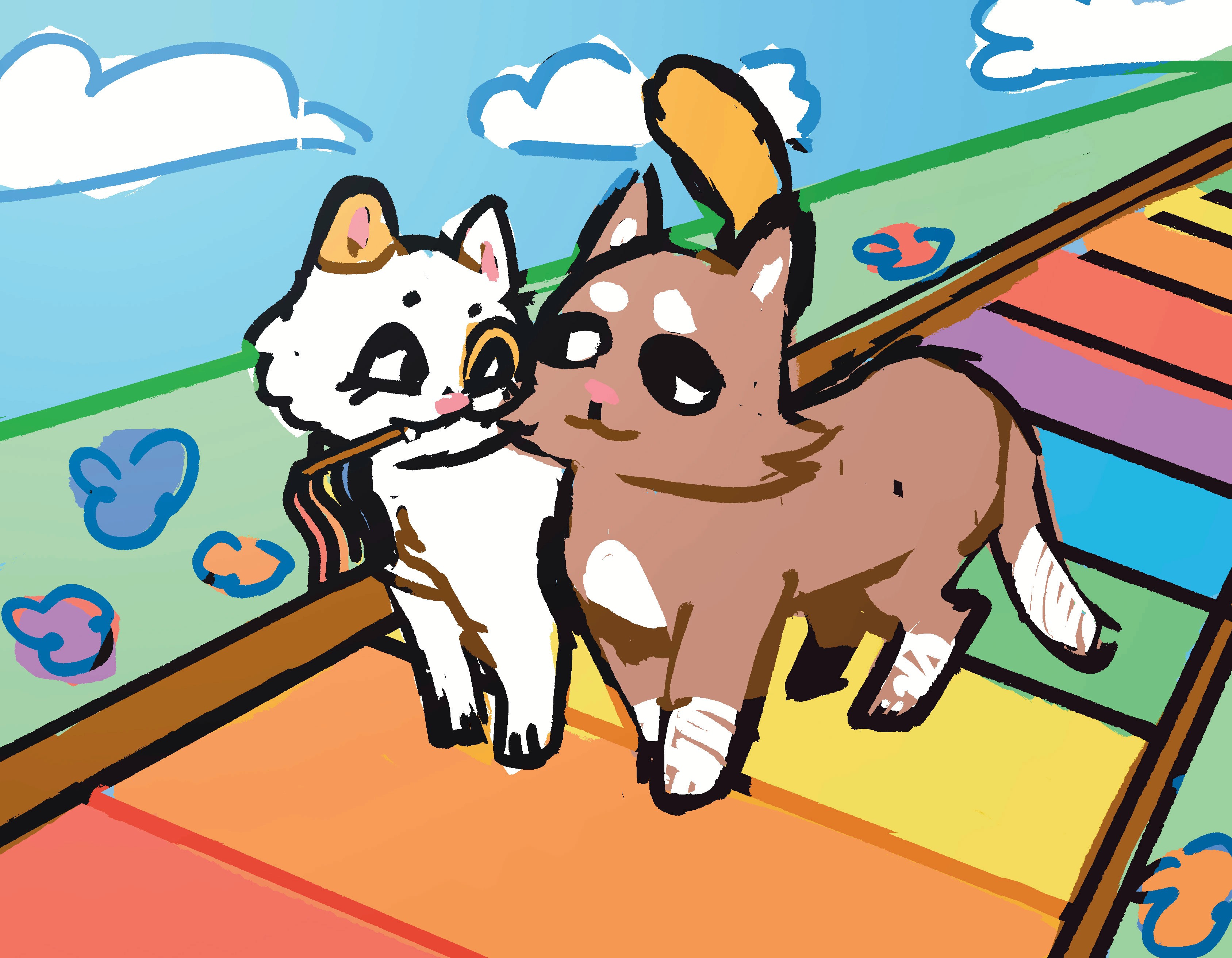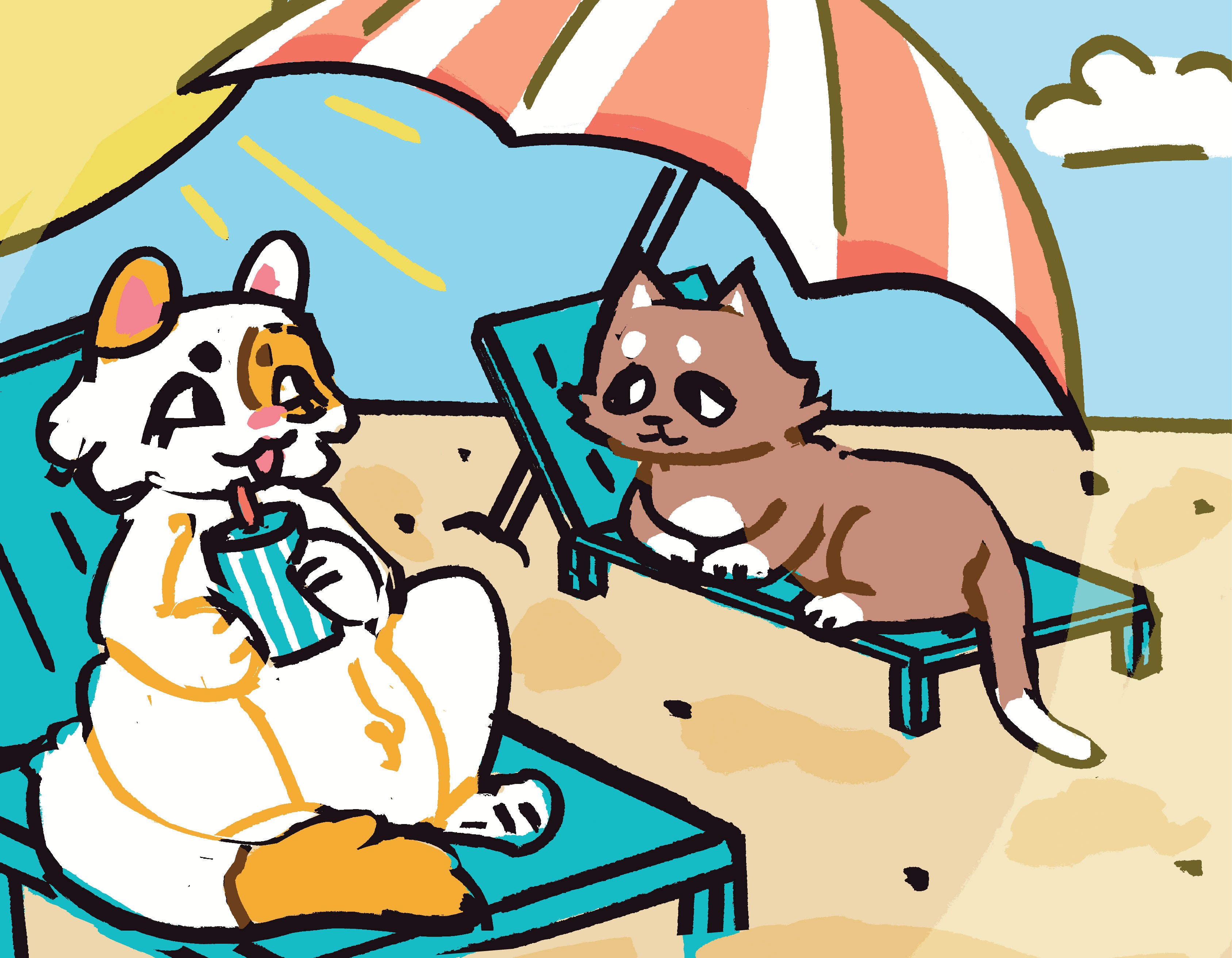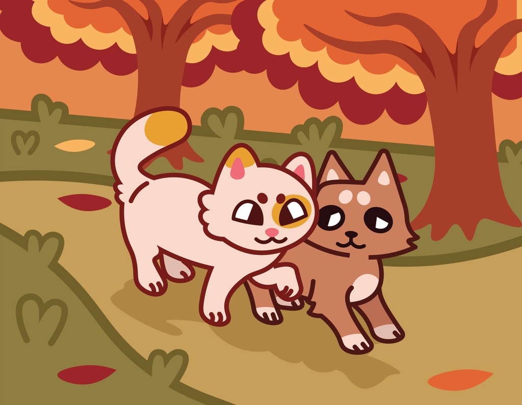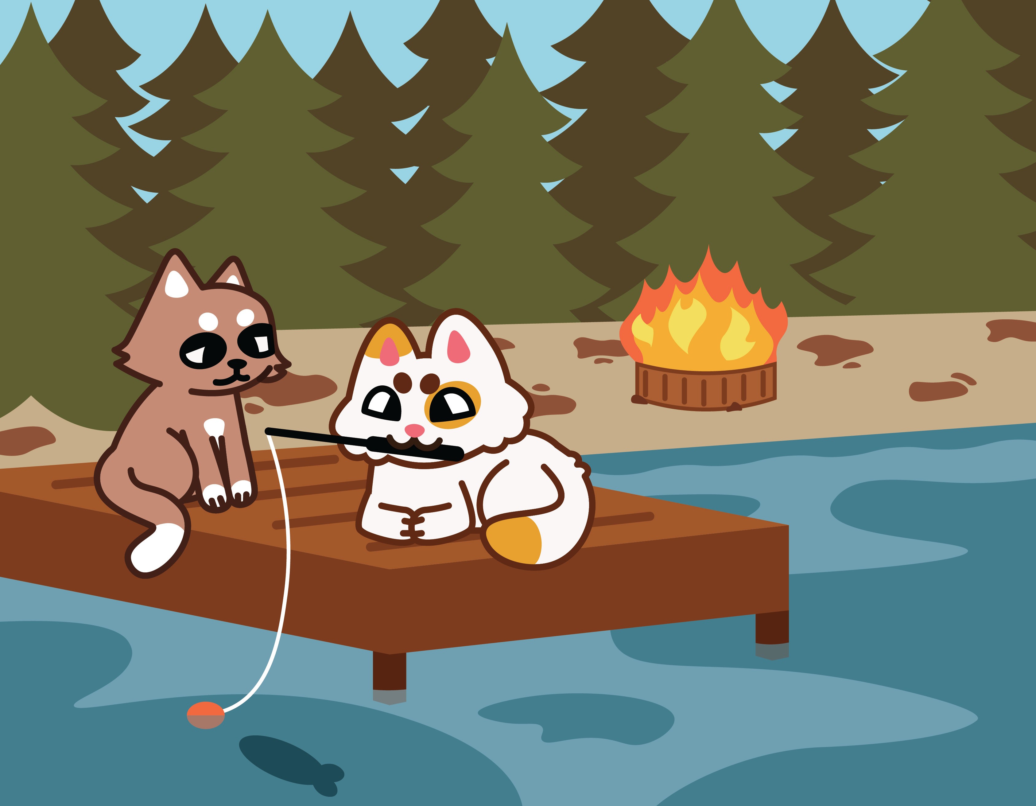 A 12-month calendar full of colorful illustrations of “slice of life” moments between two cats throughout the year. Each illustration connects to the weather, holiday, or just general connotations of the month. Geared towards young and young-at-heart cat fans who like colorful art. Created in Adobe Illustrator with vectors and a heavy focus on shape and color.